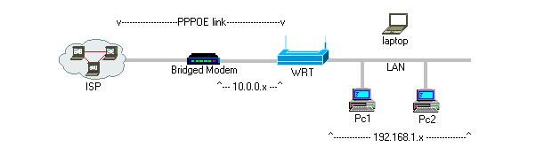 图中modem地址段10.1.0.0/24,ddwrt地址段192.168.1.0/24,使用了ddwrt拨号internet。(图片来自文后参考链接)
